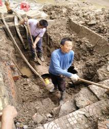 五月一日凌晨三點(diǎn)多鐘,宜城市振興大道聯(lián)通公司門前直徑400mm的鑄鐵管突然爆管。正值五一小長(zhǎng)假,為了能在最短的時(shí)間內(nèi)恢復(fù)供水,公司領(lǐng)導(dǎo)接到市民報(bào)警后,及時(shí)組織搶修人員趕赴事發(fā)地點(diǎn),根據(jù)現(xiàn)場(chǎng)情況,迅速制定搶修方案,組織搶修人員緊急開(kāi)挖,并同時(shí)制作搶修配件。當(dāng)時(shí)宜城正天降大雨,搶修人員的衣服很快就濕透了,雨水與泥土形成的泥漿濺滿了他們?nèi)?,路過(guò)的市民紛紛投來(lái)了敬佩的目光。雖然一身雨一身泥,大家全然不顧,心中只有一個(gè)念頭:盡快把管道維修好保證正常供水,讓市民過(guò)一個(gè)快樂(lè)的五一勞動(dòng)節(jié)。大家齊心協(xié)力,克服一切困難,連續(xù)作戰(zhàn),最終比預(yù)計(jì)的搶修時(shí)間提前了五個(gè)小時(shí)恢復(fù)正常供水。