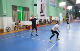 風秋景氣爽,健兒競風流。在羽毛球賽場上的供水人,手握球拍,跳躍、反手、扣殺……賽場上,人影躍動、羽球翻飛,參賽選手們你來我往、揮拍有力,時而大力扣殺,時而飛身撲救,配合默契、盡顯活力,比賽現(xiàn)場精彩紛呈。