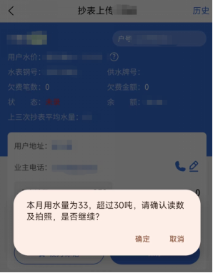 年初,公司完成智慧水務(wù)平臺營收系統(tǒng)升級,新增了手機抄表、數(shù)電發(fā)票開具、掃碼評價等功能,其中“手機抄表”實現(xiàn)了用水量異常預(yù)警,在實際運用中發(fā)揮了重要作用。在宜城窯灣八隊武先生家的例行抄表過程中,公司抄表員范云飛、李一可通過“手機抄表”系統(tǒng)錄入數(shù)據(jù)時,“抄表上傳”頁面自動彈出“本次用水量超過30噸”的提醒。經(jīng)與用戶過往平均用水量對比后,抄表員確認(rèn)該用戶本季度用水量遠(yuǎn)超日常,并在進(jìn)一步觀察中發(fā)現(xiàn)水表持續(xù)緩慢轉(zhuǎn)動,判斷用戶表后可能存在漏水點。